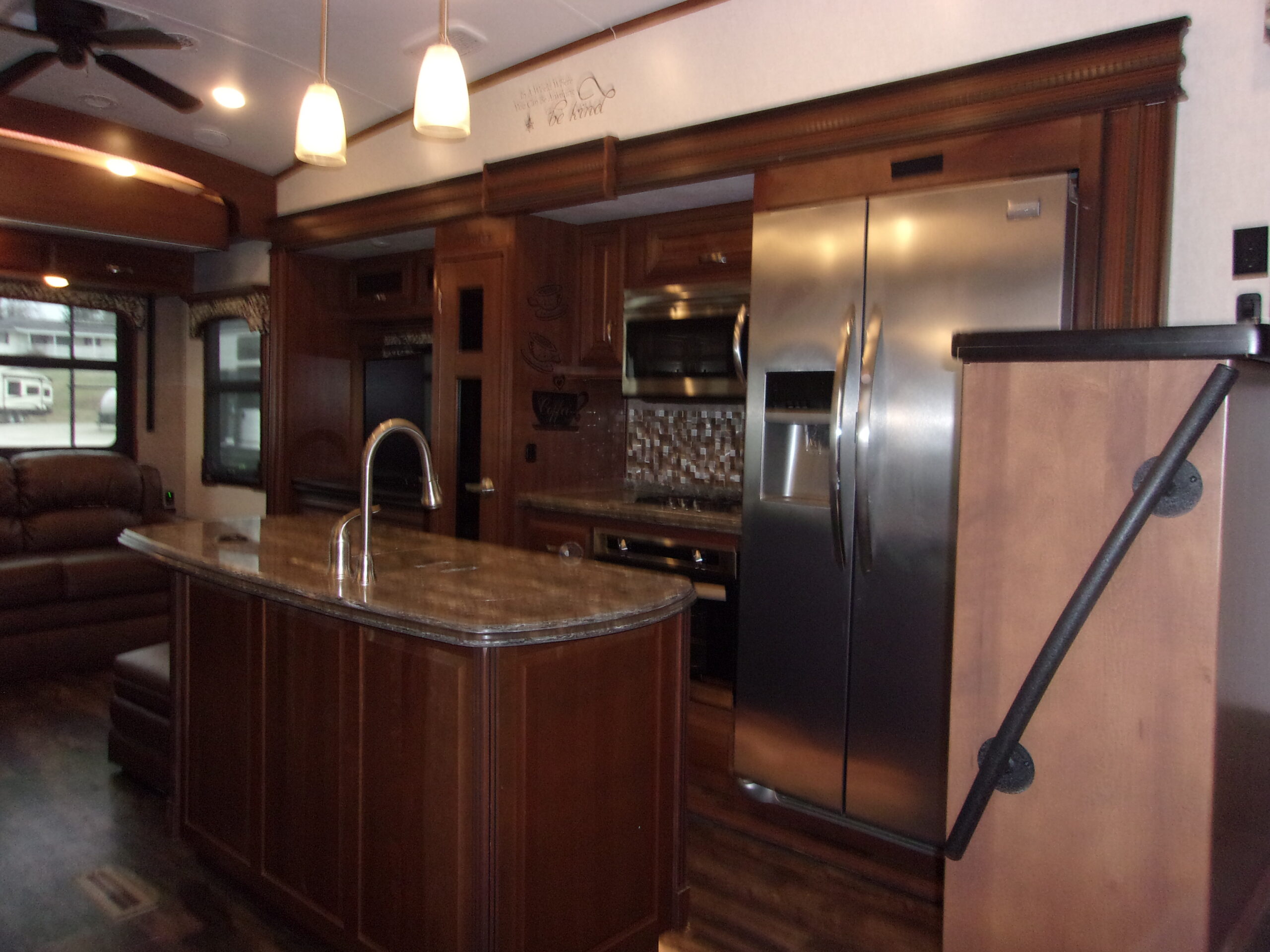 - Kitchen: Residential-style kitchen with a large refrigerator, island, and ample counter space.