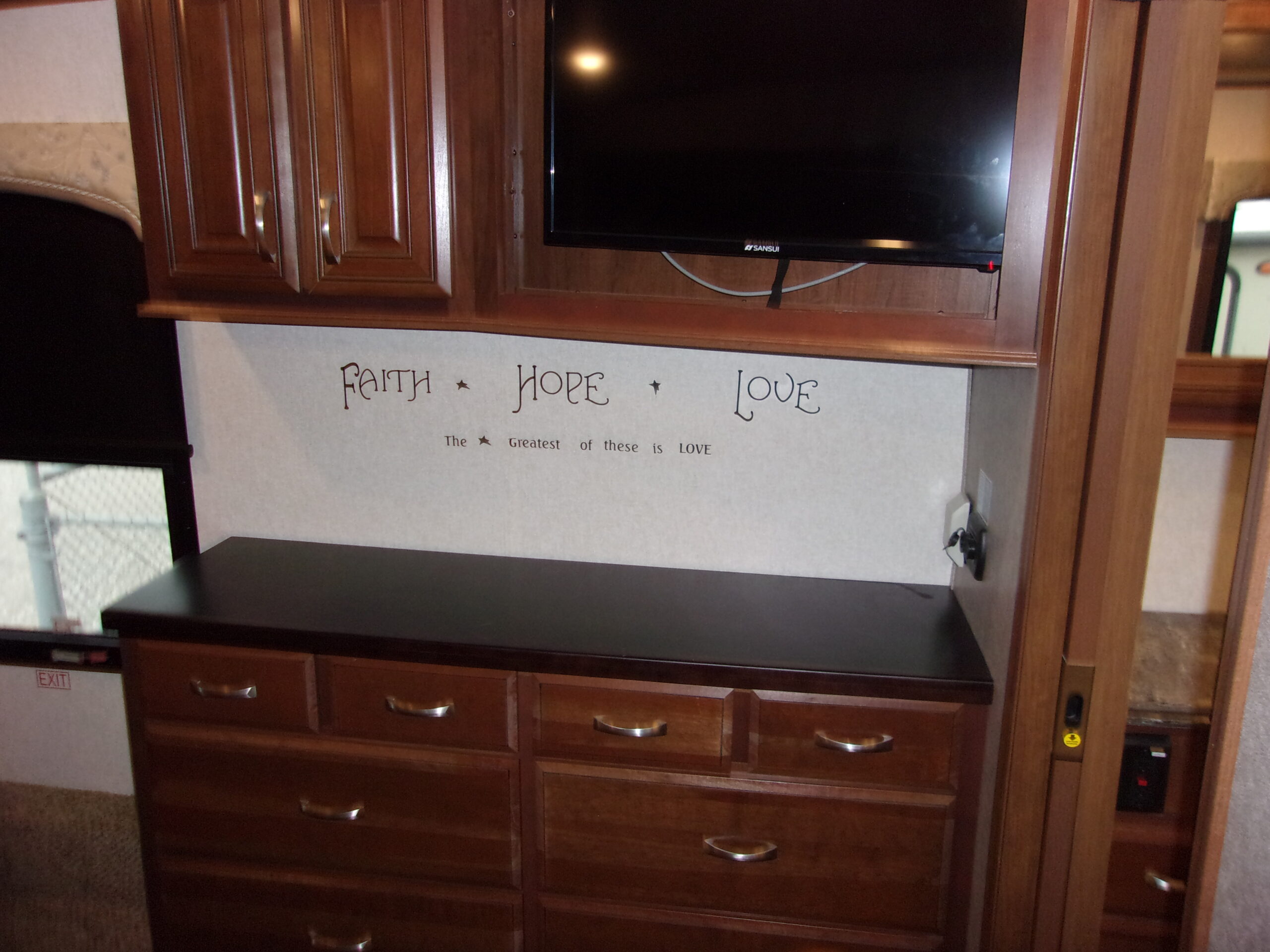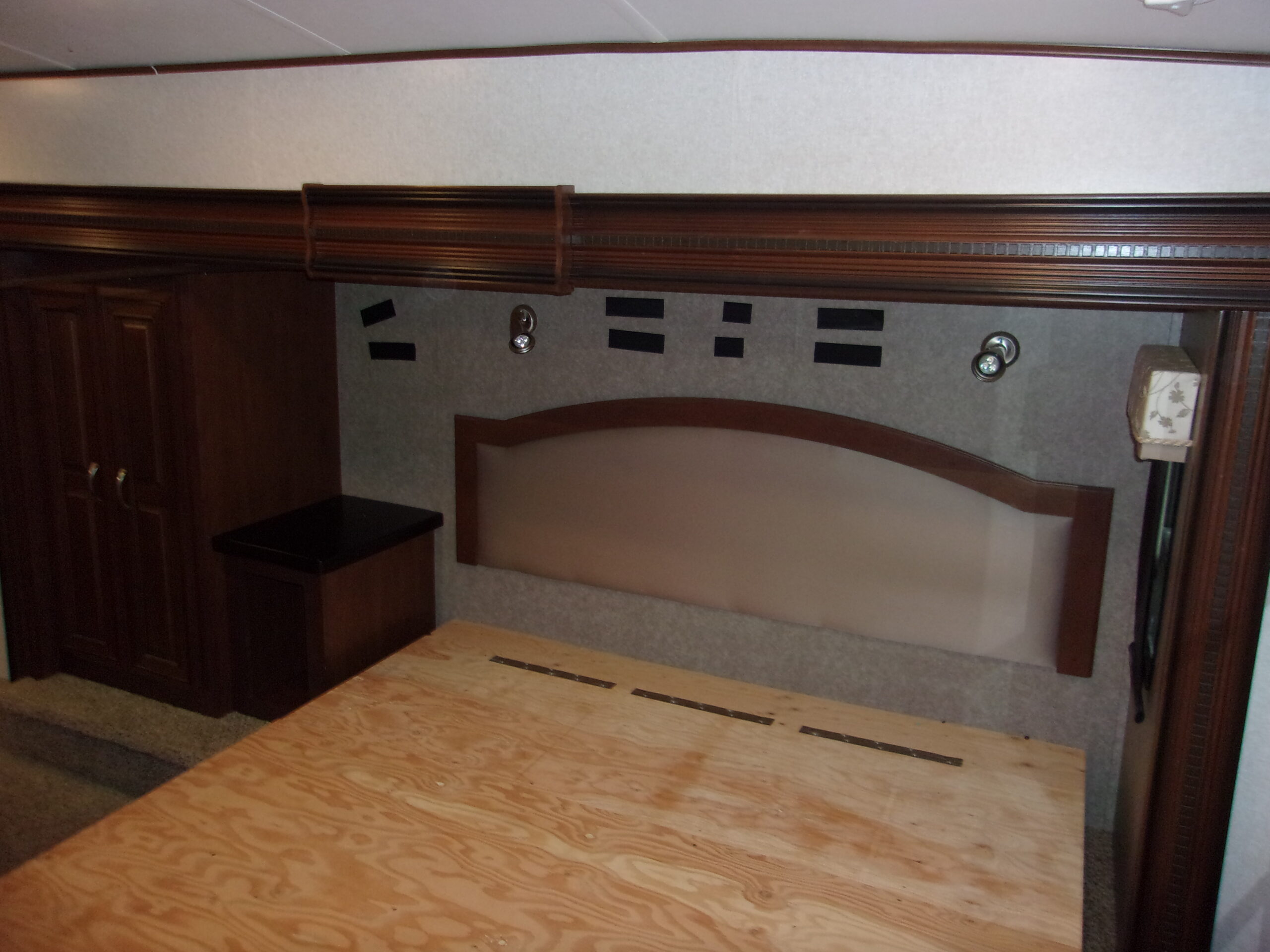 Bedroom: The signature feature is the Electric Euro Lift Bed, providing extra room in the bedroom.