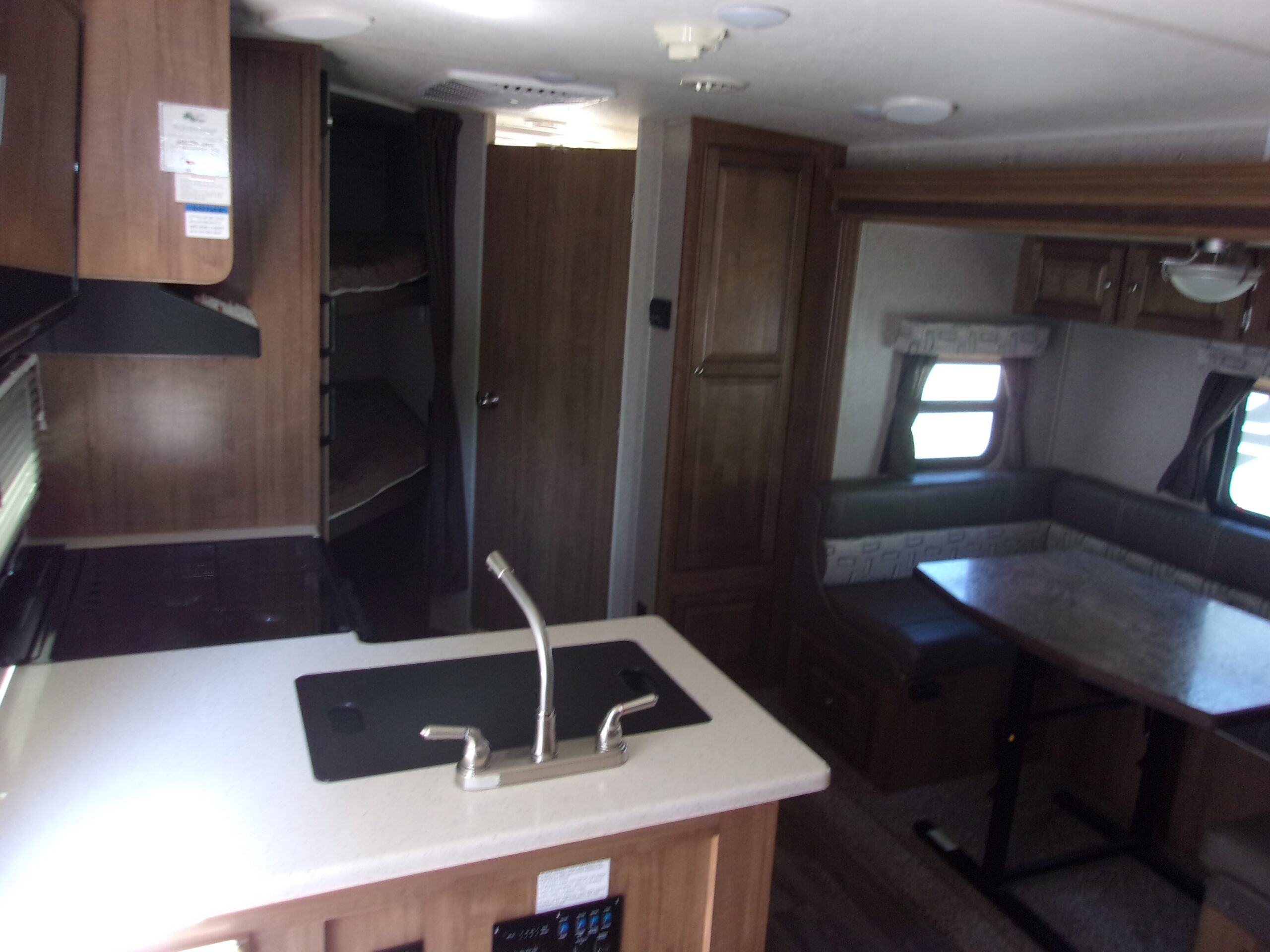 BUNKS…OUTSIDE KITCHEN….TANDEM AXLE….U-SHAPED DINNETE…MURPHY BED…BACK UP CAMERA…SLIDE TOPPERS…CAMPER LOOKS NEW INSIDE AND OUT…COVER INCLUDED…WILL NOT LAST LONG AT $19500
