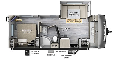 Specs: Length: 25.92′ | Weight: 5528.0 lbs | Slide Outs: 1 | Sleep Number: 3 | Exterior Height: 10.92′ | Fresh Water Tank: 54.0 gal | Black Water Tank: 30.0 gal