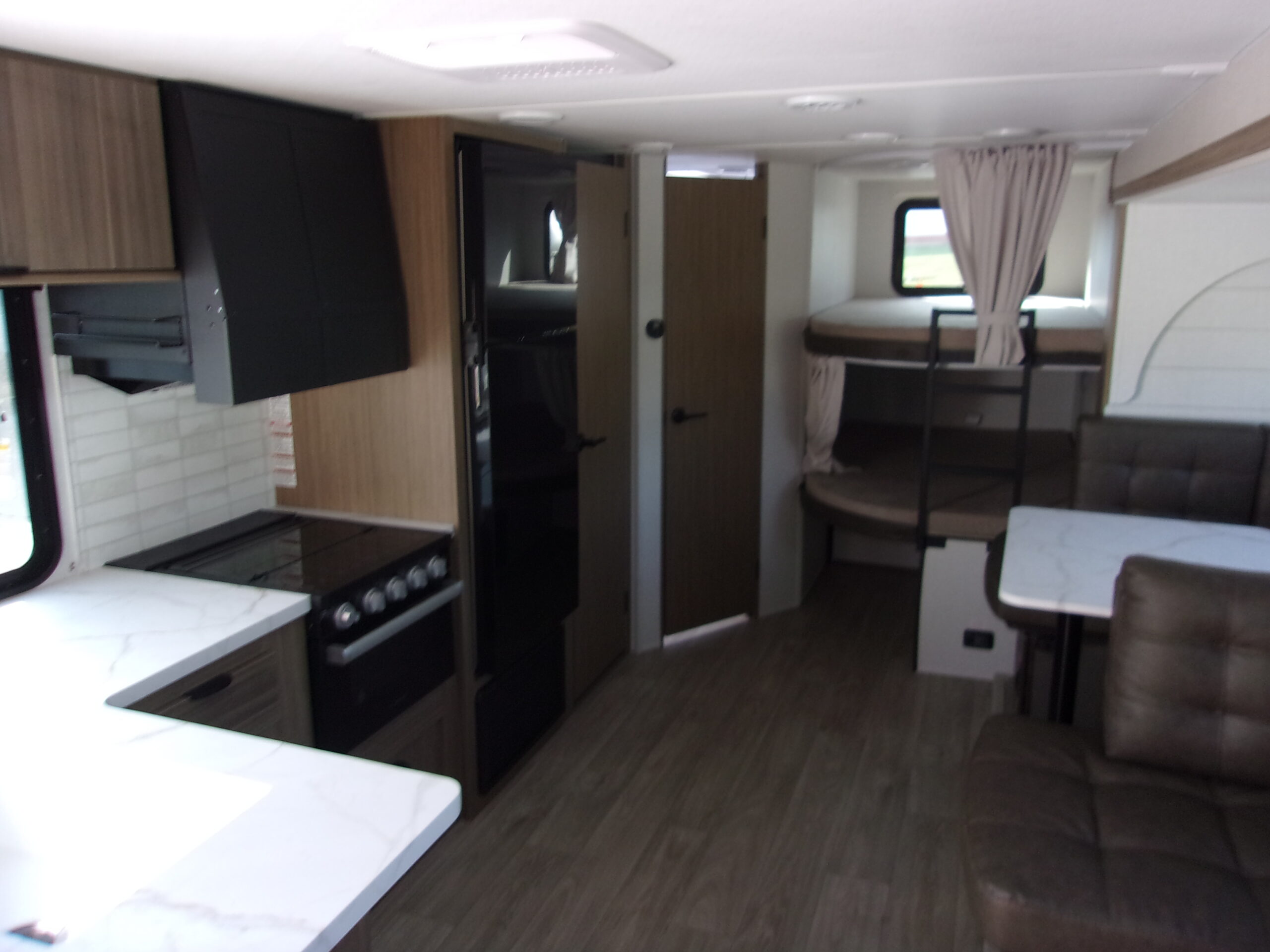 The 263BHXL is perfect for family travels. The rear features two oversized bunks for the kids, with plenty of space to stretch out. The grown-ups will sleep soundly in the front queen bedroom, which includes hanging closets and under-bed Stow N Go Storage. The living area includes panoramic windows and the Versa-Lounge. The kitchen provides a 11 CU. FT. refrigerator and TONS of storage.